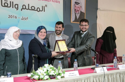واختتم الحفل بتكريم وزارة شؤون المرأة ونقابة المعلمين ، للوزير الأغا وتوزيع الشهادات على المدربين والمعلمين المشاركين في الدورة .