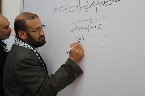 وشدد مطير على ضرورة الوقوف في وجه الادعاءات الاسرائيلية المزيفة حول مدينة القدس وحقهم في أرض فلسطين من خلال نشر الرواية الفلسطينية الحقيقية، مؤكداً أن الريشة والقلم والقصيدة أدوات هامة لمواجهة الاحتلال وتكّمل أشكال المقاومة الأخرى.