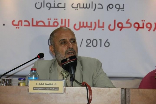 بدوره تحدث الدكتور محمد مقداد عميد كلية التجارة في الجامعة الإسلامية عن تبعات بروتوكول باريس الاقتصادي، لافتاً إلى أننا كفلسطينيين لا نمتلك أدواتها، ولا نملك سياسية مالية وتجارية ونقدية، لان الحصار الإسرائيلي قائم، والاحتلال لا يلبي لنا مطلباً إلا في حالة تناسبه ووقتما يريد ويشاء.