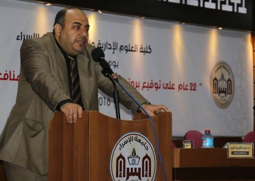 وأوضح، أن الجامعة وحرصاً منها على تقديم حلول عملية من شأنها التخلص من هذا الاتفاق والتبعية الاقتصادية للاحتلال، نظمت يوماً دراسياً في الذكرى 22 للتوقيع على بروتوكول باريس الاقتصادي مع كوكبة من خبراء الوطن في المجال الاقتصادي والقانوني والمالي والسياسي، معرباً عن أمله أن تكون مخرجات اليوم الدراسي قادرة على تغيير هذا الواقع خاصة أن السياسيين الفلسطينيين وحتى من وقعوا على هذا الاتفاق وقادوا تنفيذه يدركوا تماما بل وينادوا بتغييره، لما له من آثار كارثية على الواقع الفلسطيني.