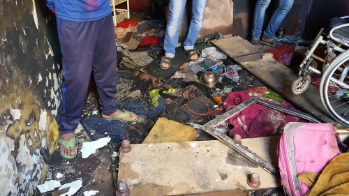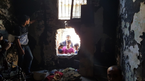 بين أزقة مخيم الشاطئ الضيقة يقبع منزل عائلة الهندي، وما أن تطأ قدماك المنزل ستشتم رائحة الحريق المنبعثة من المكان، وبقايا ملابسهم وألعابهم وعفشهم المتناثر في الغرفة الضيقة التي وقعت بها الكارثة.