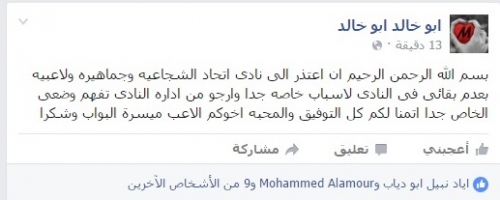 وأضاف : "أرجو من اداره النادي تفهم وضعي الخاص جدا"، متمنيا التوفيق للفريق في المرحلة المقبلة.