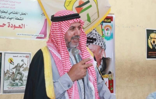 خالد السراج رئيس اللجنة الشعبية للاجئين في مخيم النصيرات أكد على حق العودة للشعب الفلسطيني، واستحقاق عودته إلى اراضيه المسلوبة ابان نكبة عام 1948.