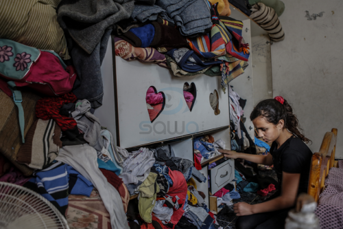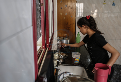 بعناء ومشقة تحمل أميرة أبو كميل ابنة الاثني عشر ربيعاً "سلة الغسيل" المملوءة بملابس اخوانها الأطفال، بين يديها الناعمتين، لتأخذها إلى سطح المنزل، حتى تعرضها إلى أشعة الشمس.
