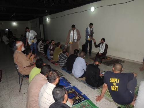 وتضمنت الأمسية صلاة التراويح ومسابقة دينية ومديح نبوي ومواعظ دعوية وتوزيع مطوية "أهم الأحكام لصحة الصيام " وتوزيع بعض الحلوى على النزلاء.