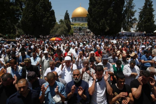 فقد استقبل الأقصى منذ ساعات الليلة الماضية وفجر وصباح اليوم موجات بشرية وافدة من عموم الوطن، ومن جنسيات أجنبية، لتأخذ مكانها داخل مصليات وأروقة وباحات ولواوين المسجد الاقصى الممتد على مساحة 144 دونما من الأراضي داخل القدس القديمة.