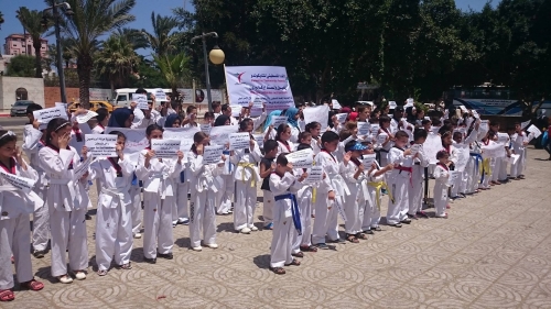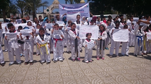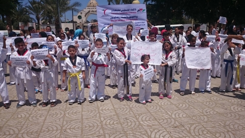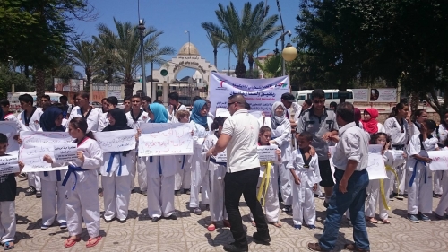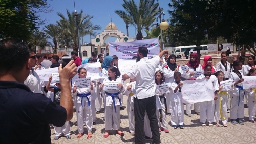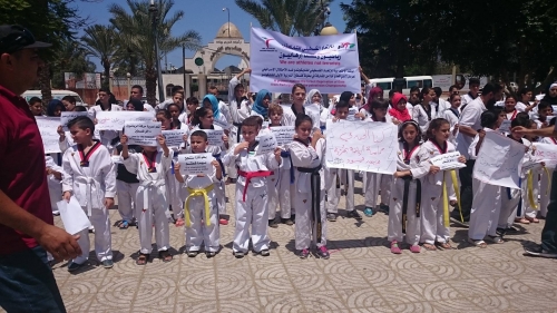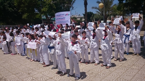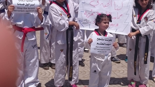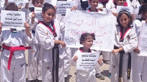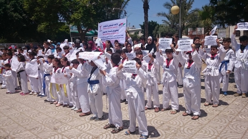 جاء ذلك خلال وقفة احتجاجية نظمها الاتحاد الفلسطيني للعبة، شارك فيها العديد من أطفال غزة الممارسين للألعاب القتالية، في ساحة الجندي المجهول، غرب مدينة غزة اليوم الأحد.