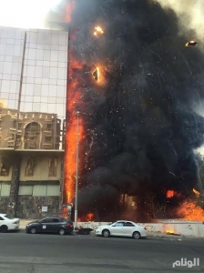 شاهد الصور والفيديو.. حريق هائل بأحد الفنادق بمكة المكرمة