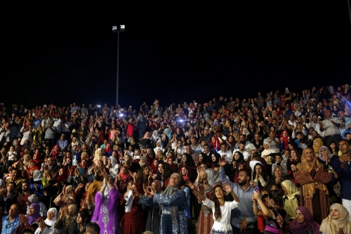 وتخلل الحفل، الذي حضره آلاف المواطنين، وأقيم على مدرج حديقة الاستقلال، مجموعة من الفقرات الفنية، إضافة لعرض غنائي للفنان الشعبي قاسم النجار.