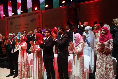 وبارك عبد الرحيم، باسم الرئيس، للعرسان ولذويهم هذه الفرحة الكبيرة، وقدم الشكر لرجل الأعمال الفلسطيني حماد الحرازين الذي قدم كافة تكاليف هذا العرس، ولتبرعه بتأثيث بيوت العرسان.