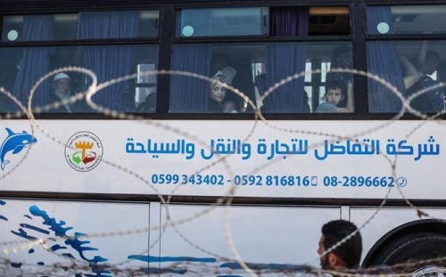 بالصور.. مغادرة تسع حافلات عبر معبر رفح البري