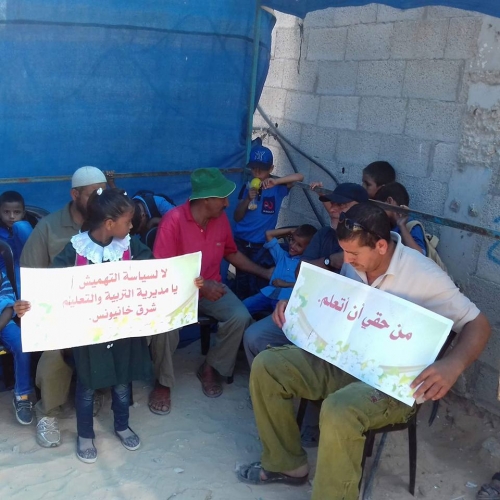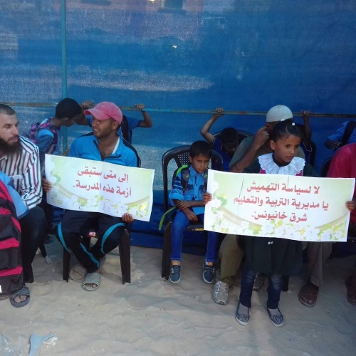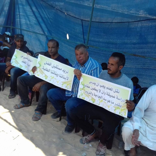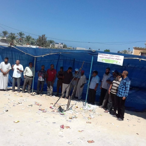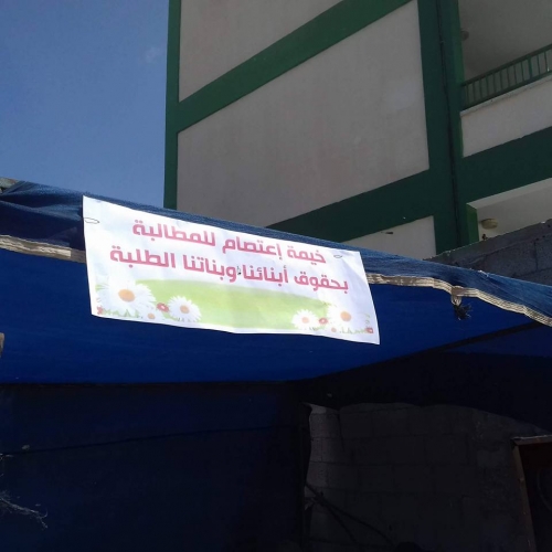 ونظم عدد من الاهالي على مدار اليومين الماضيين اعتصاماً مفتوحاً امام المدرسة ، من أجل الضغط على وزارة التربية والتعليم في غزة للتدخل وحل أزمة مدرسة المعري في أسرع وقت.