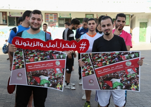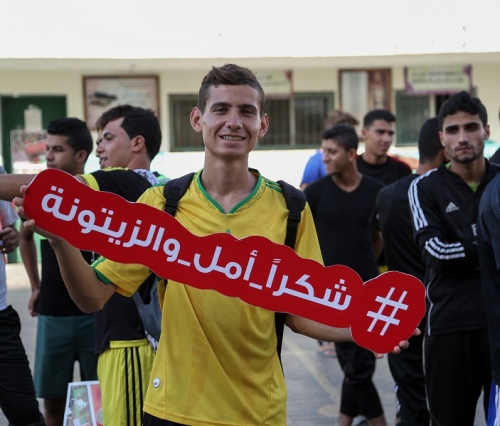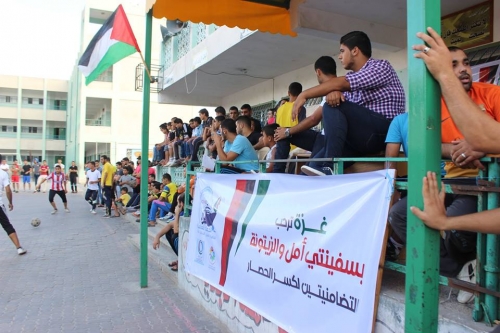 غزة / سوا / نظمت الحملة العالمية لمناصرة السفن النسائية لغزة ومبادرة شباب من أجل غزة بطولة رياضية حملت عنوان أحرار لكسر الحصار.. #أمل_والزيتونة رفضاً لحصار غزة وترحيباً بأسطول الحرية الرابع وتقديراً لموقف نادي ستليك الاسكتلندي وجماهيره الداعم للقضية الفلسطيني.