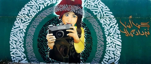 لكل فنان فلسفته مع الفن وطريقته في التشكيل والرسم ، وعلى جدارية "الفتاة والكاميرا" زين الطلاع لوحته بجملة تقول (كنّ أنت تزدد جمالاً)، وهو يؤكد أنه "كـالكاليجرافي" أي يجمع بين الخط العربي والجرافيت.