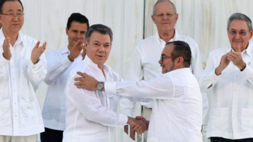ومنذ أقل من أسبوع احتفل مع زعماء عالميين وقادة فارك بانتهاء أطول وآخر نزاع مسلح في أمريكا اللاتينية.