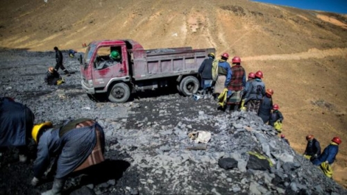 يخرج عمال المناجم كل يوم إلى عملهم عبر طريق ضيق يبلغ طوله واحد كيلو متر، والذي يربط البلدة بالمناجم في المناطق الجبلية القريبة.
