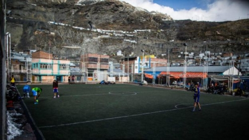 ولأن الحشائش لا تنمو في تلك البلدة المرتفعة جدا عن سطح البحر، يلعب عمال المناجم كرة القدم على ملعب يكسوه النجيل الصناعي.