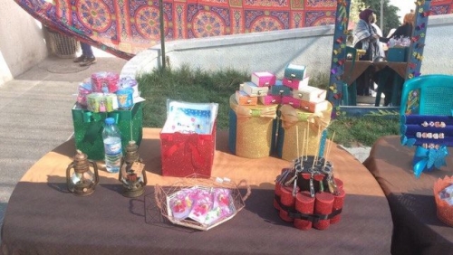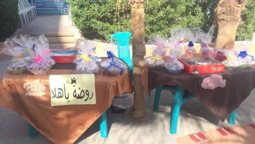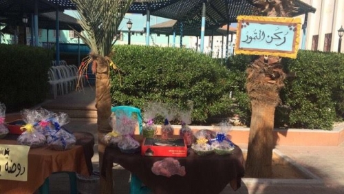 واوضحت " ان جميع منتوجات المعرض هي من صنع المعلمات وبمساعدة اطفال الروضة ، منوهة الي ان ريع المهرجان يذهب الي معهد الأمل للأيتام .