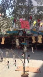 ومن جانبها قالت احدى معلمات روضة يا هلا ان المعلمة تقوم بتجهيز الركن المسؤولة عنه في المعرض ويقوم الطلبة بمساعدها في تزيين المعرض وشجر الزيتون واعداد الاطباق الفلسطينية التقليدية حتي يستشعروا بقيمة العمل الذي يقومون به .
