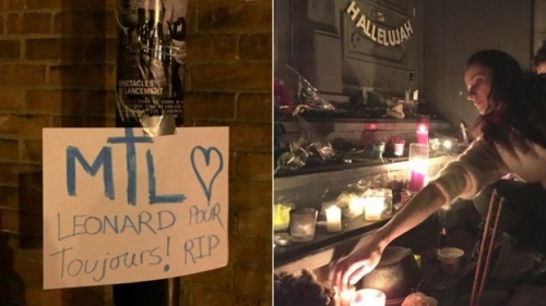 وتجمع معجبو كوهين أمام منزله في كندا، واشعلوا الشموع.