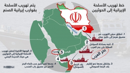 إنفوغرافيك.. خط تهريب الأسلحة الإيرانية للحوثيين