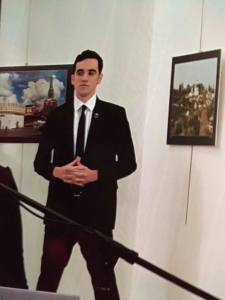وفي وقت لاحق، نقلت وكالة الصحافة الفرنسية عن رئيس بلدية انقرة مليح غوكتشيك، إعلانه أن قاتل السفير الروسي في تركيا شرطي.