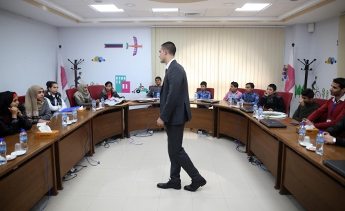 اما الطالب محمد سمور فقال: "كثير بيساعدنا مشروع التعليم وانا ما بحس بالسعادة الا لما اكون بين زملائي في برنامج وجد وشكراً لبنك فلسطين على استقبالنا وترحيبه فينا وكمان الشرح اللي سهل علينا الفهم والاستيعاب".